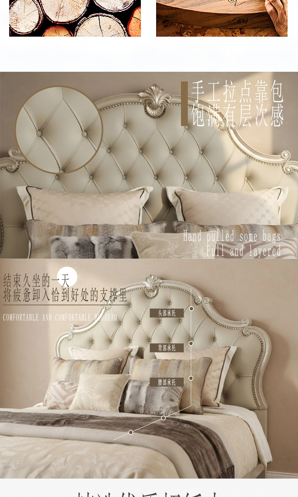 商品名称:欧式风格 榉木卧室家具 1.8米轻奢大床 MA-125 1.8床