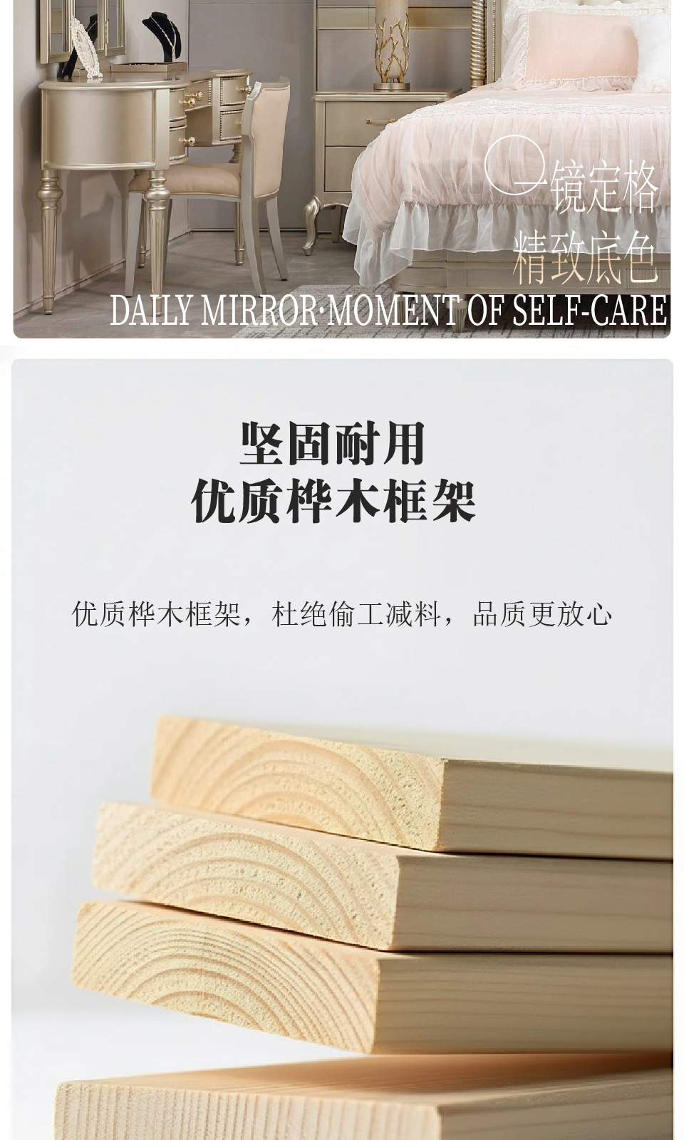 欧式风格 实木卧房家具 轻奢优质大床 MA-103A 1.8床+MA-103B 1.5床