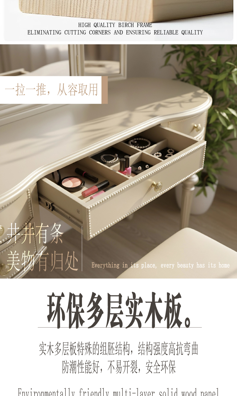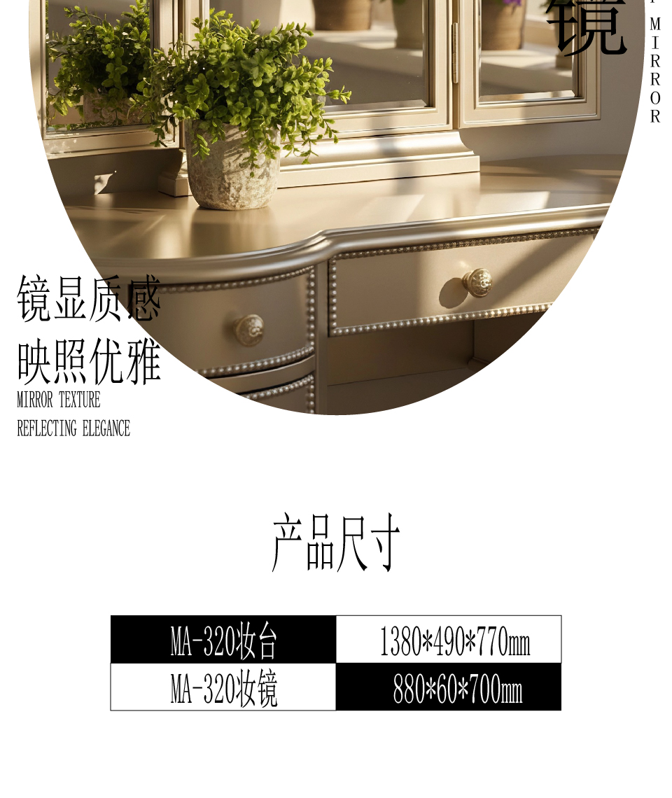 欧式风格 唯美梳妆台 优质桦木妆台妆镜组合 MA-320妆台妆镜
