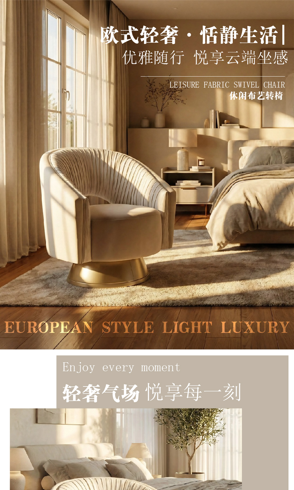欧美风格 轻奢布艺软包沙发 客厅旋转沙发 C205-香槟色-转椅