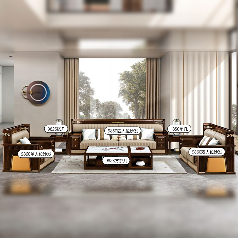 商品编号:E044-9860沙发、9823方茶几、9825搭几、1850角几