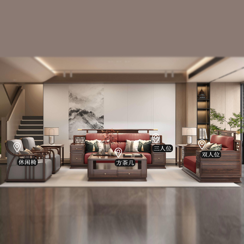 商品名称:新中式乌金木沙发,仿真皮实木沙发,岩板实木方茶几,客厅家具组合