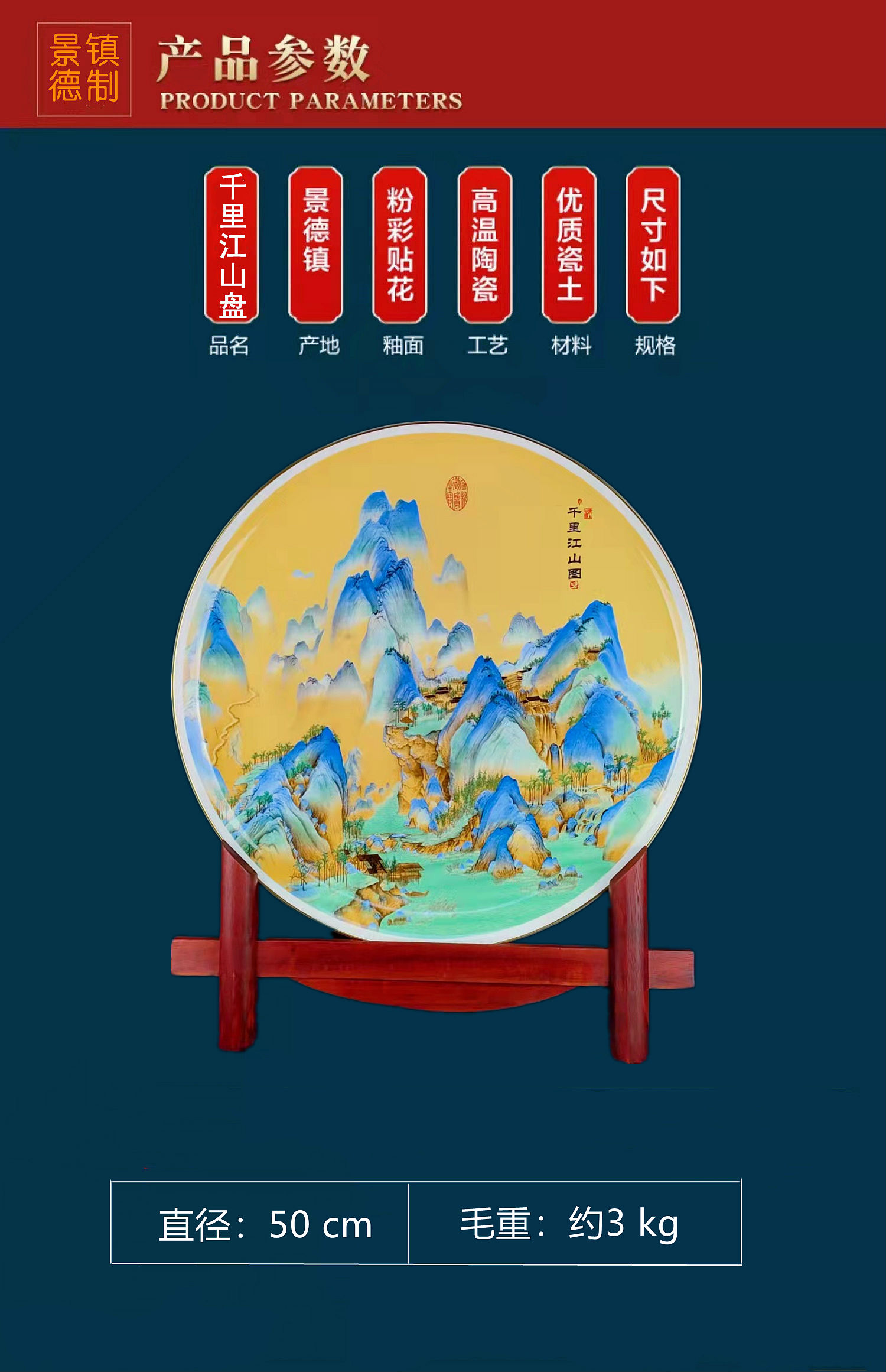 商品名称:鸿运当头挂盘 挂盘50cm 陶瓷材质 办公室客厅玄关装饰桌面摆件 送亲友老师领导
