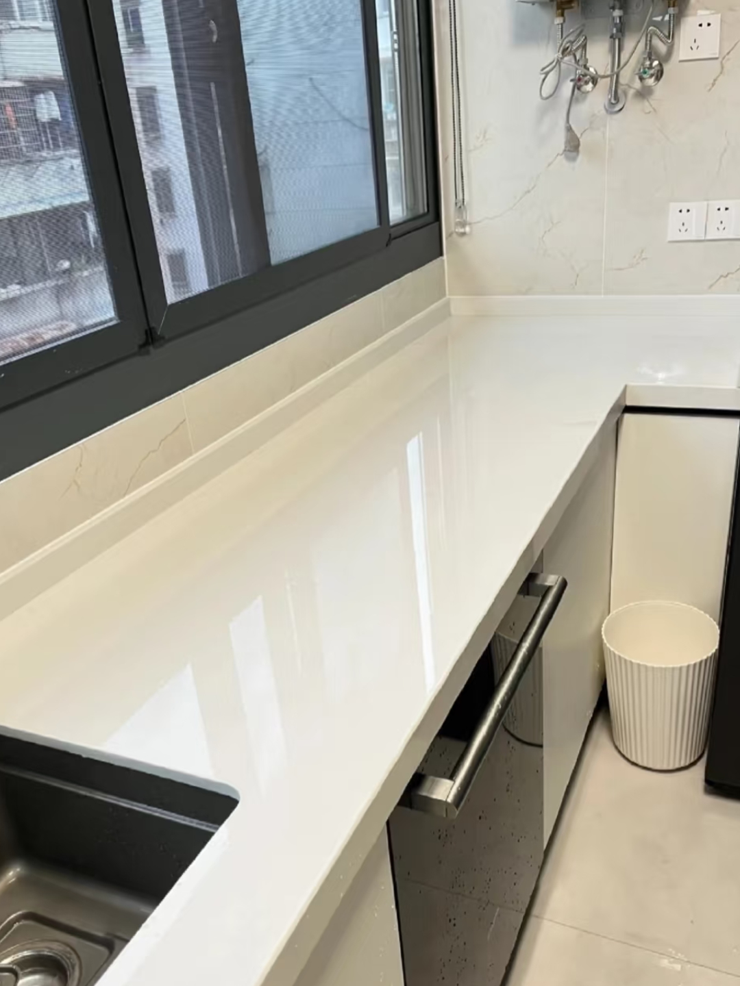 石英石台面才是刚需家庭的“本命选择”!耐高温、抗刮磨,酱油、油渍等厨房常见污渍,随手一擦就干净,不用特意养护,日常使用放心造,性价比直接拉满。