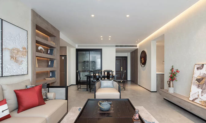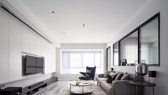 客厅是家居最主要的公共活动空间,不管你是否做人工吊顶,都必须确保空间的高度性,这个高度性是指客厅应是家居中空间净高最大者(楼梯间除外),这种最高化包括使用了各种视错觉处理。