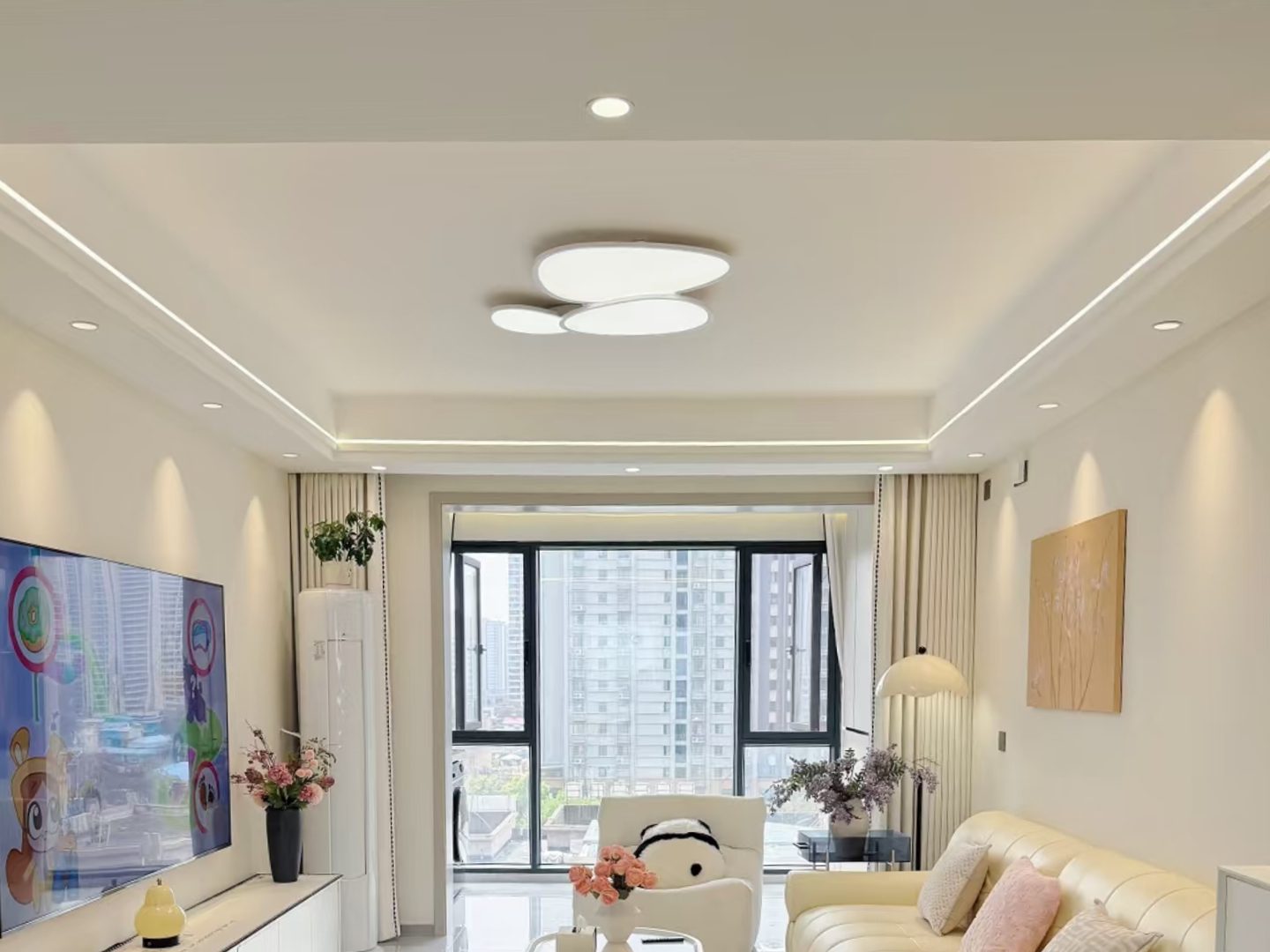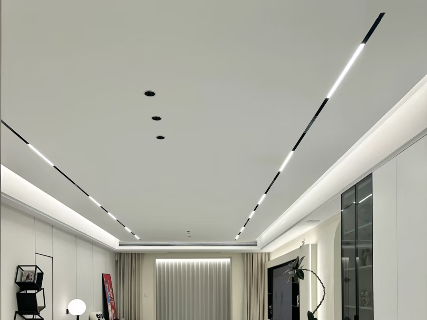 无主灯吊顶容易积灰难打理,双眼皮吊顶简约美观不压层高。