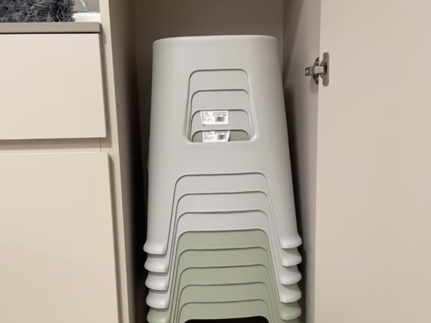 平时折叠凳收在里面不占地,家里突然来客人,随手一拉就能坐,再也不用翻箱倒柜找凳子,既实用又不影响美观,小户型尤其适用!