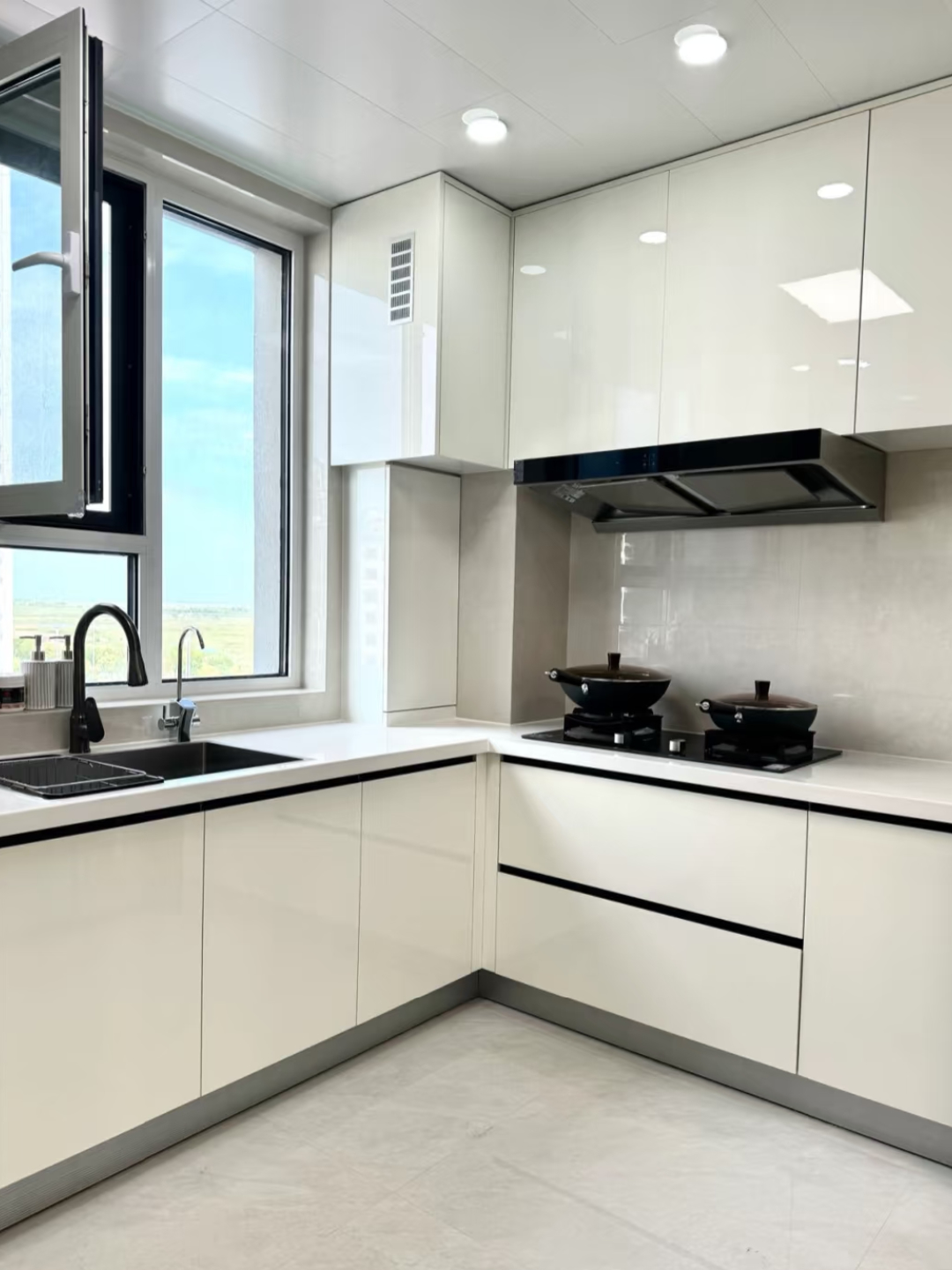 - 高光柜门:表面光滑如镜,污渍一擦即净,耐黄变还抗造,厨房高频使用也不怕“显旧”;