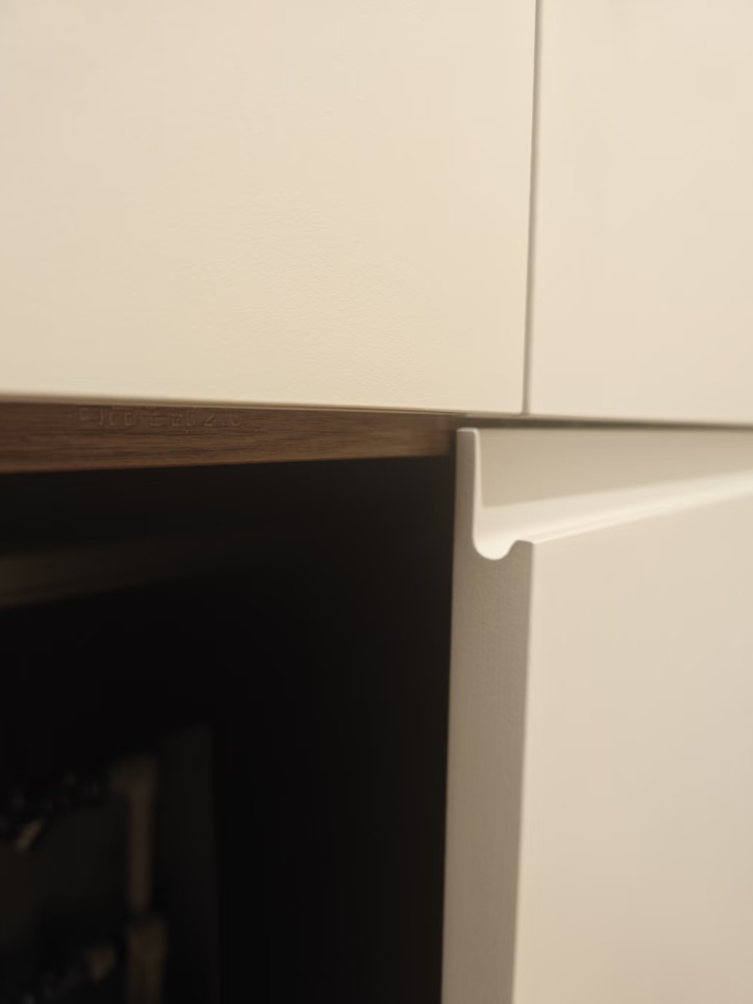 - 隐形拉手:藏在门板边缘“隐形”存在,没有卫生死角,既保证安全,又能让厨房整体感更强,颜值实用性双在线。