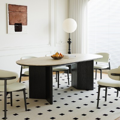 意式极简餐椅CY-077+C351 现代风格 加厚岩板餐桌 餐厅家具