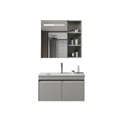 305 现代极简白色橡木陶瓷盆浴室柜 卫生间