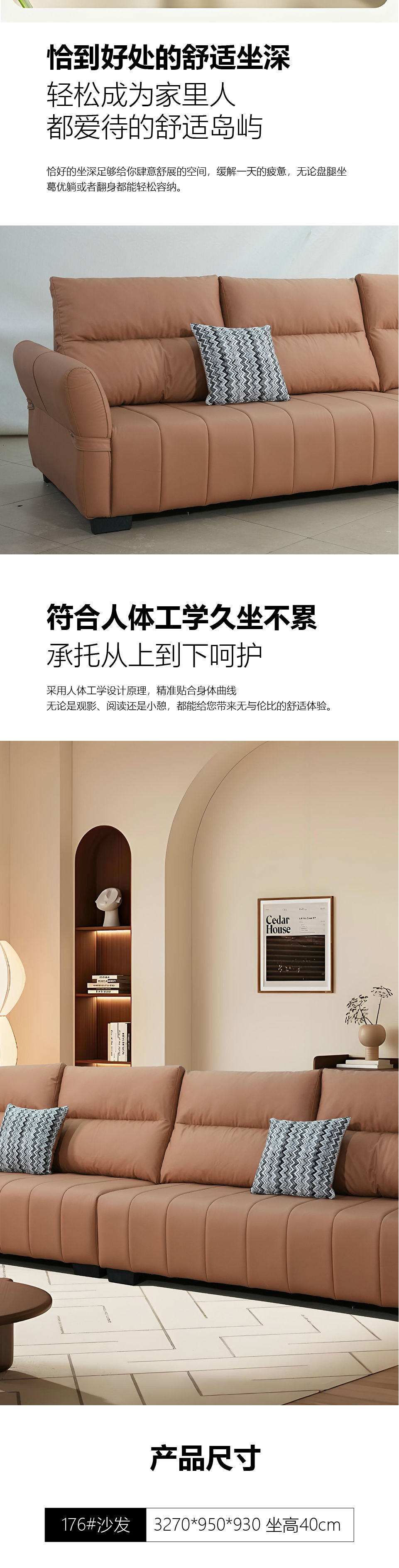 176#沙发 现代风格 科技布+实木框架沙发 简约耐用客厅家具 3.2米