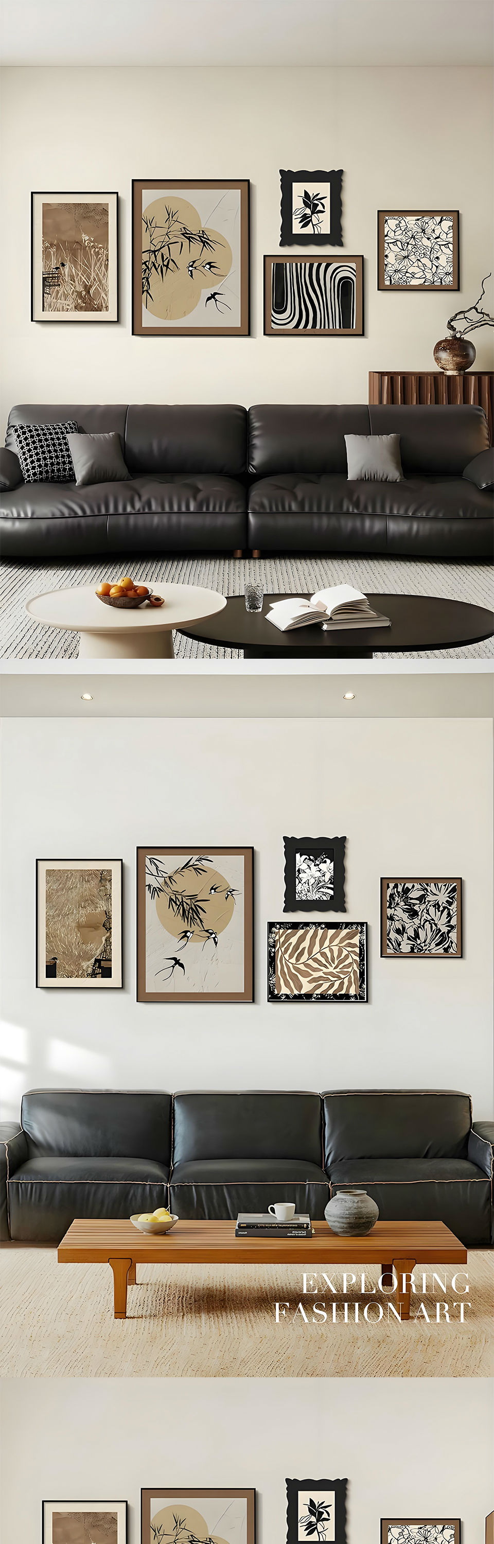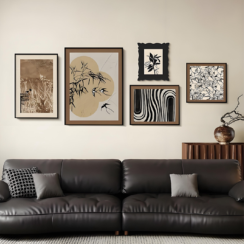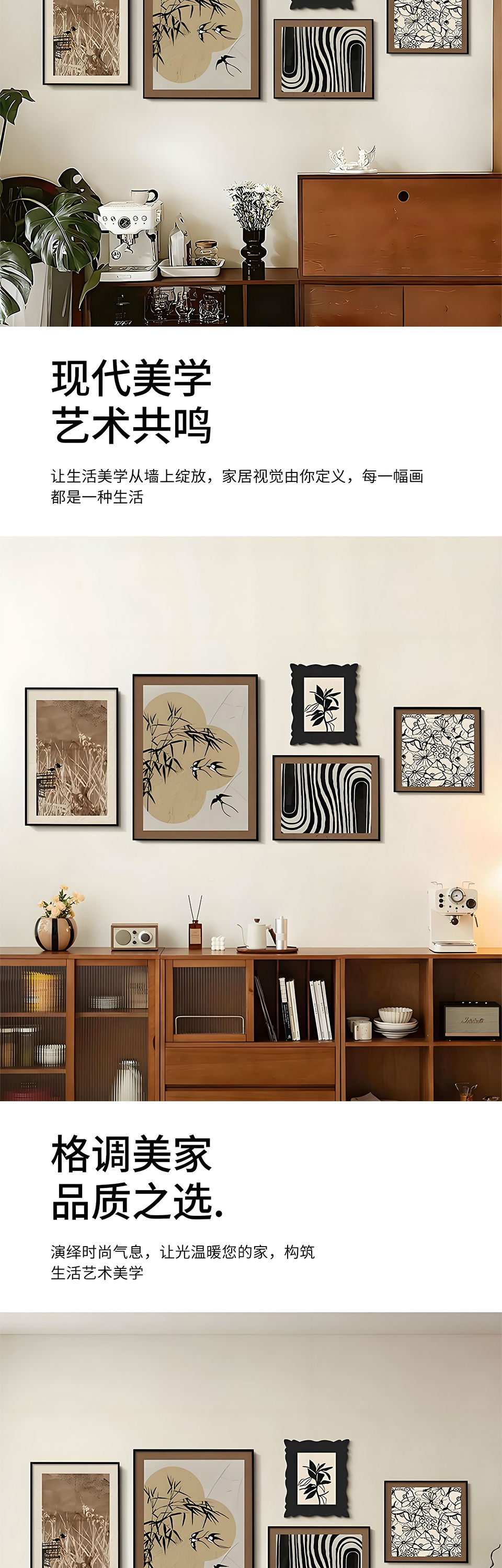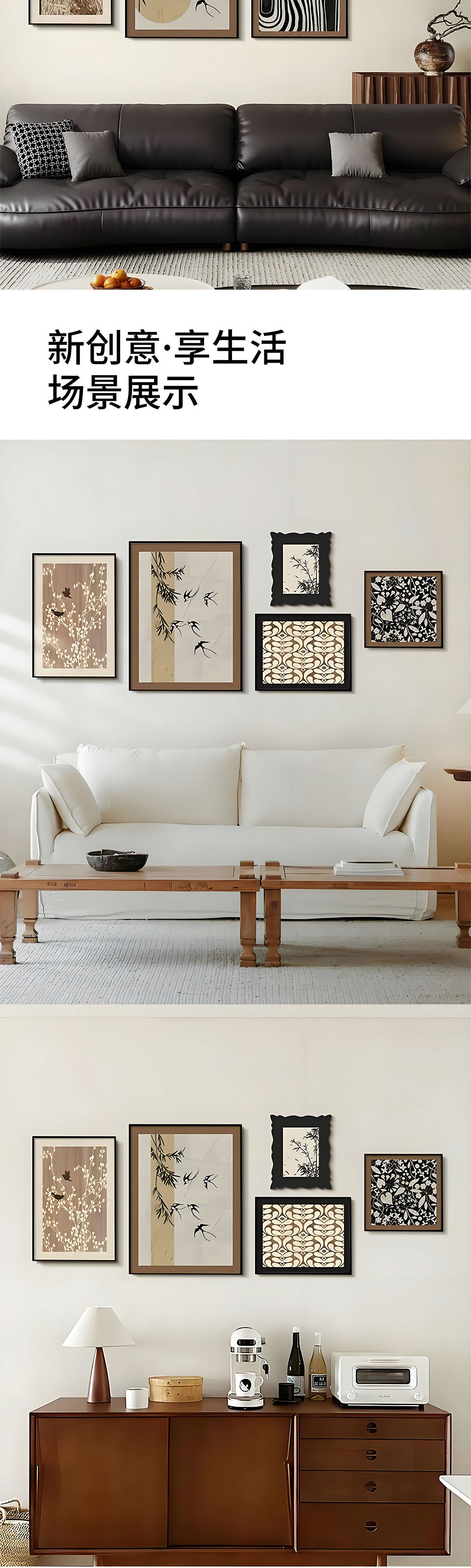 2挂画组合 中古风组合客厅装饰画沙发背景墙中式挂画卧室