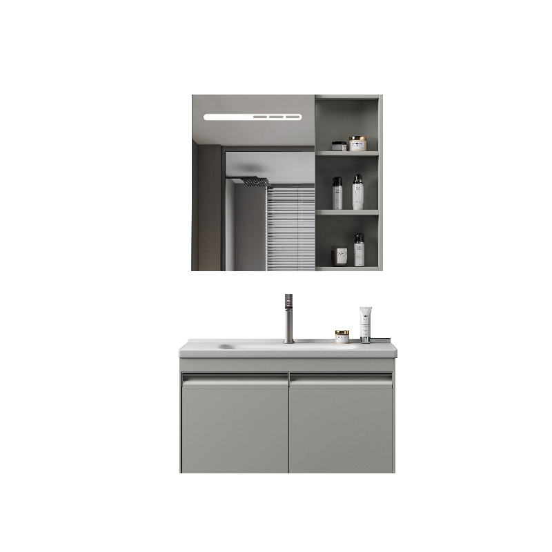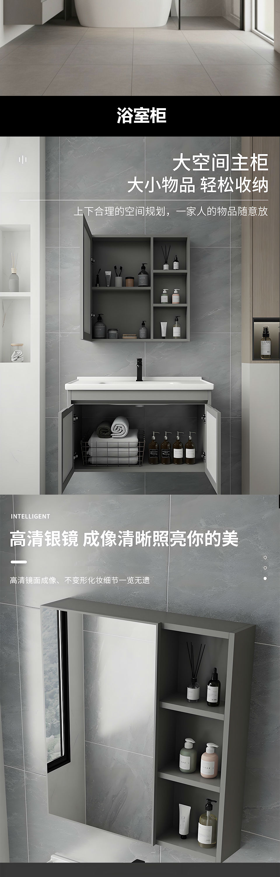 508 现代极简中式棕色橡木陶瓷盆浴室柜 卫生间