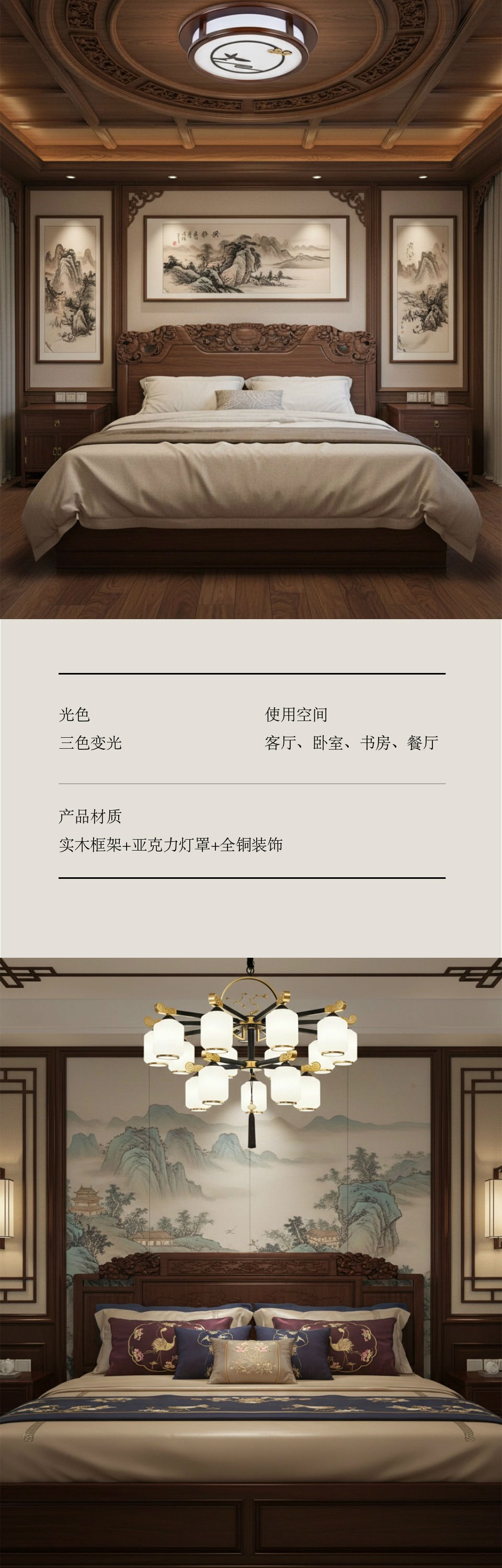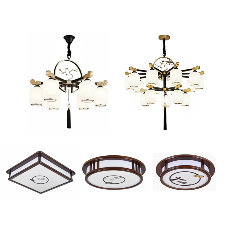中式灯具套餐1 三室两厅灯具套餐5件组合 卧室客厅餐厅灯具组合
