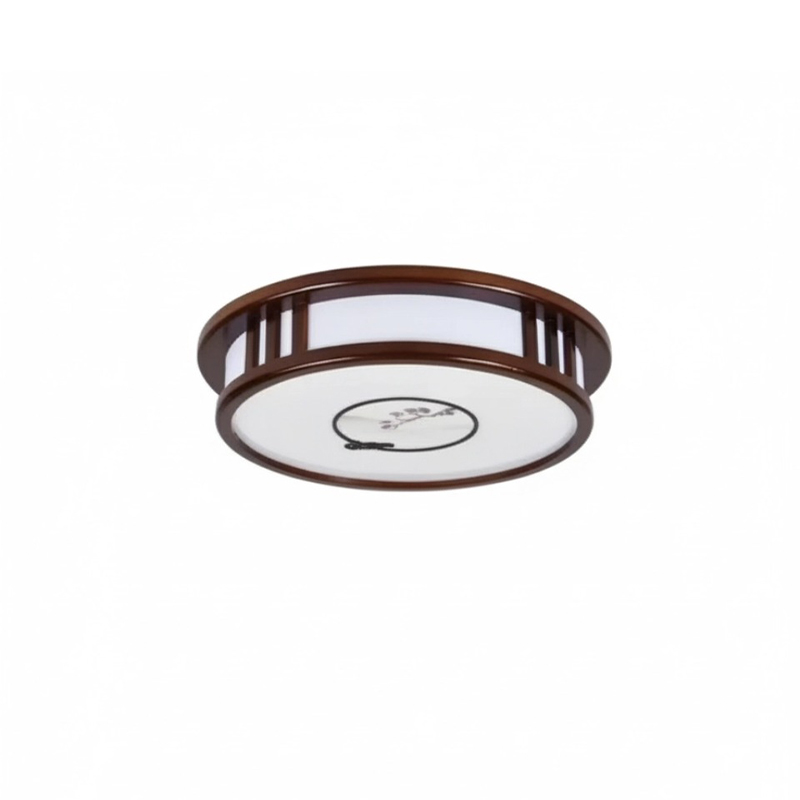 【伯利好】JS-S038-11 水墨花卉实木圆形装饰画壁画新中式客厅裝饰画卧室玄关挂画裝饰画
