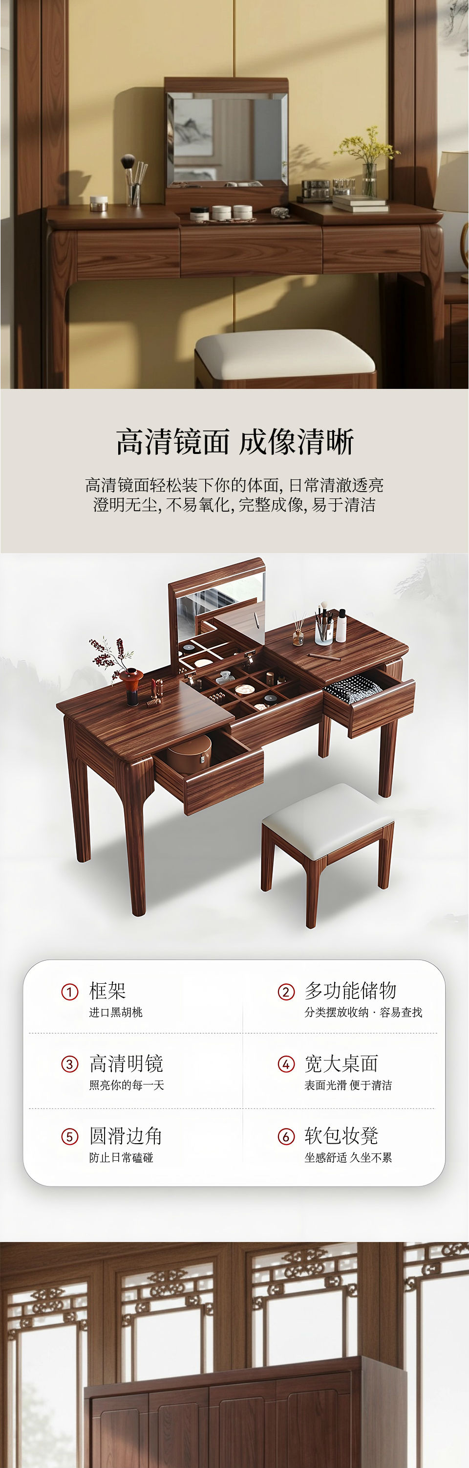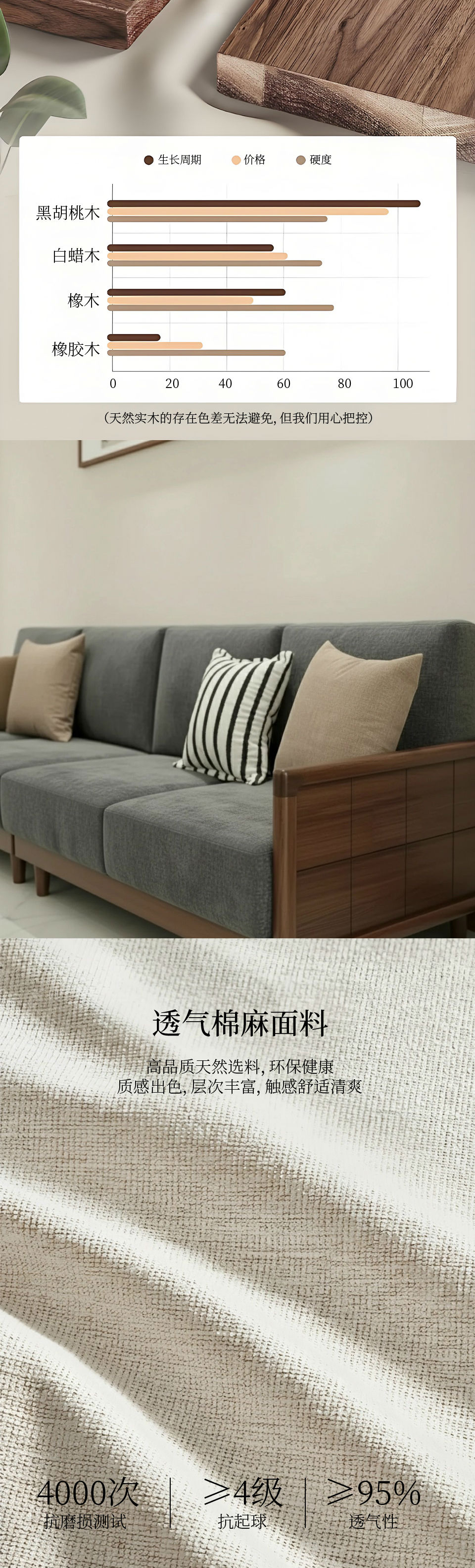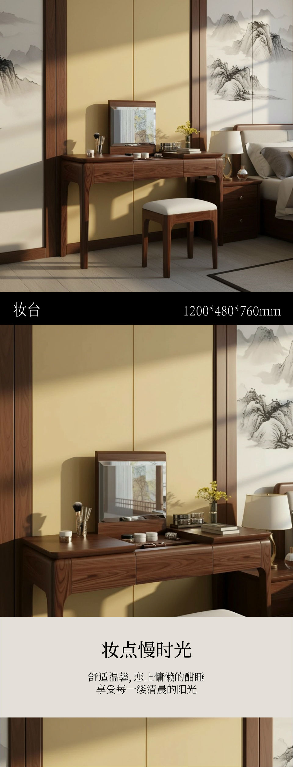 商品名称:中式套餐1 两室两厅家具套餐17件套 黑胡桃中式客厅直排沙发 卧室2床+4床头柜 妆台 衣柜 餐厅1桌4椅