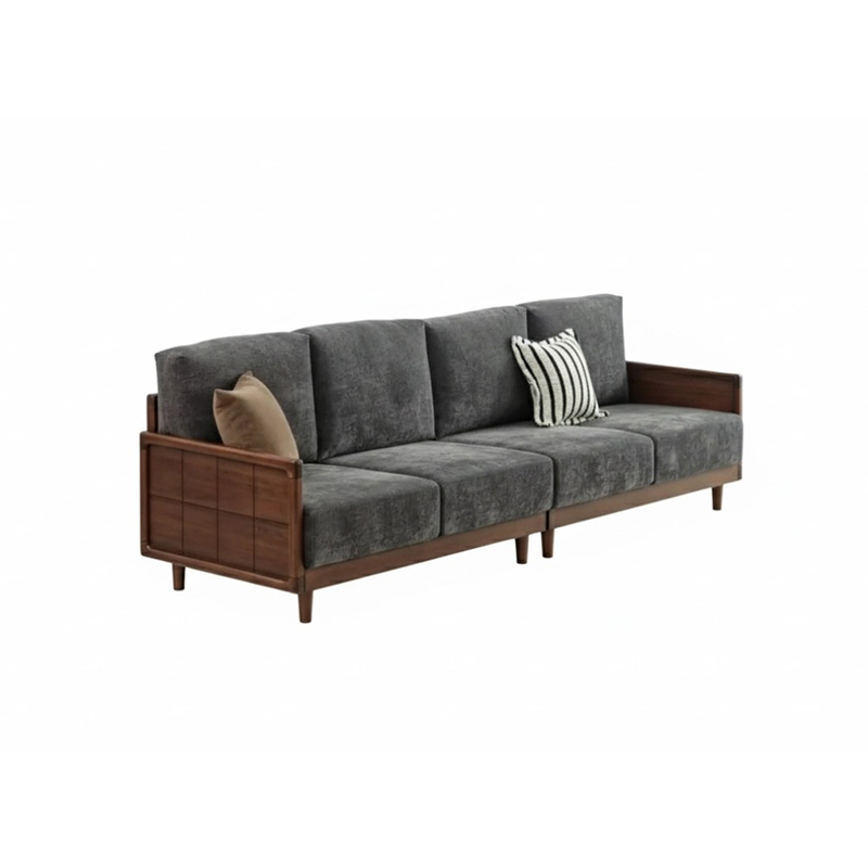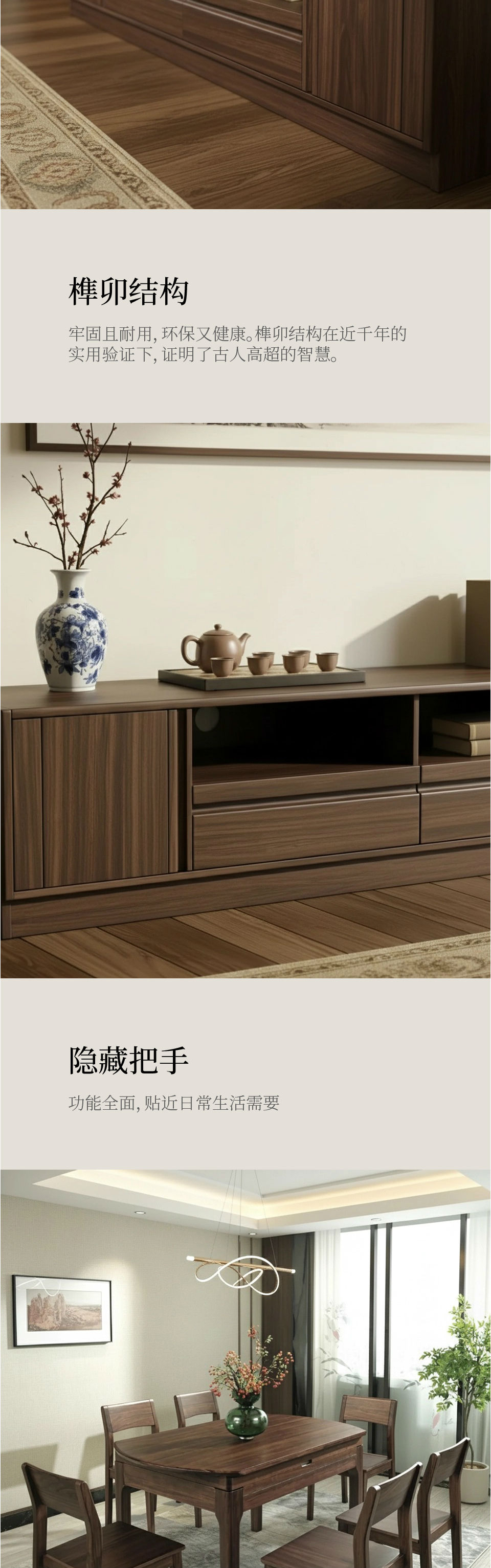 中式套餐1 两室两厅家具套餐17件套 黑胡桃中式客厅直排沙发 卧室2床+4床头柜 妆台 衣柜 餐厅1桌4椅