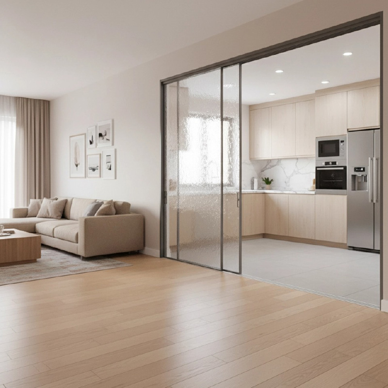 商品名称:ORK-8023+ORK-8026 08*45推拉门 极窄边框玻璃门 8mm单玻壁厚2.5mm厨房推拉门