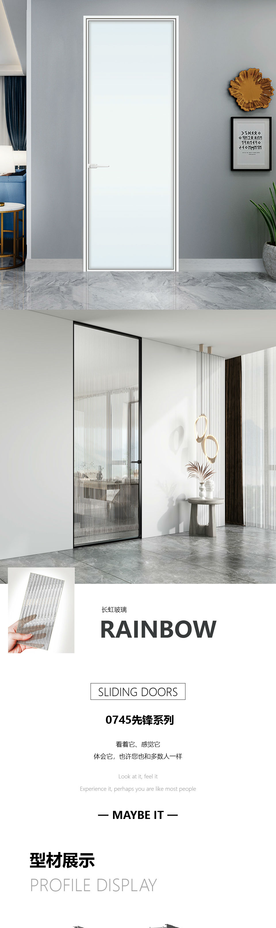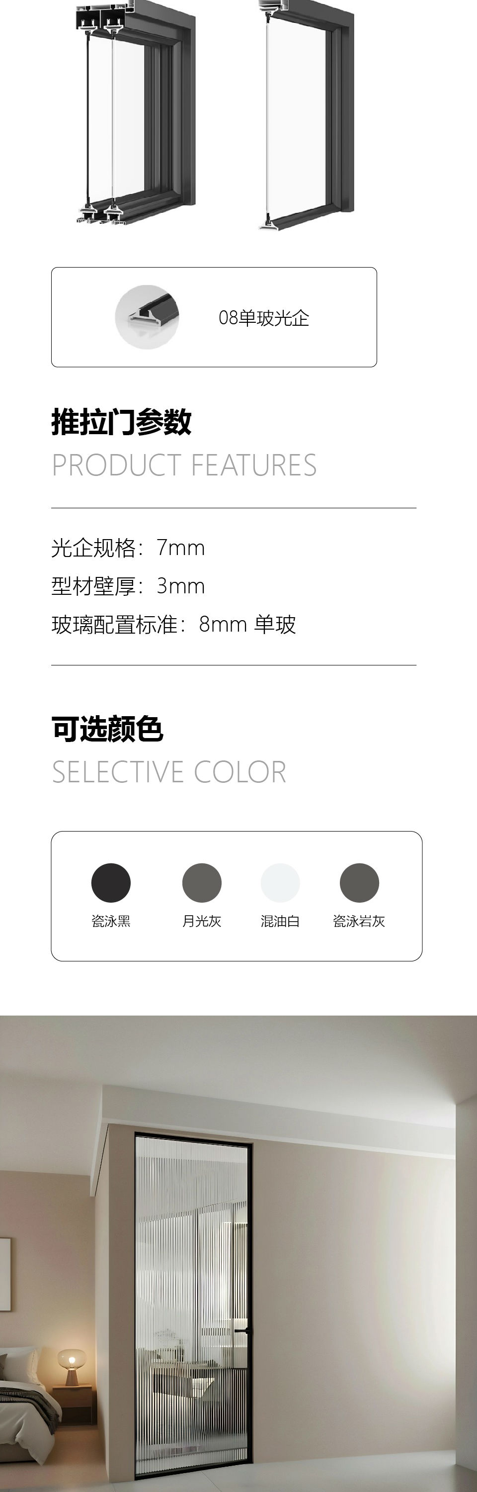 ORK-8023+ORK-8026 08*45推拉门 极窄边框玻璃门 8mm单玻壁厚2.5mm厨房推拉门
