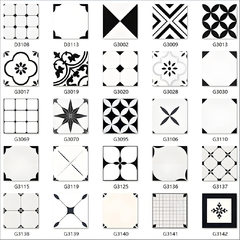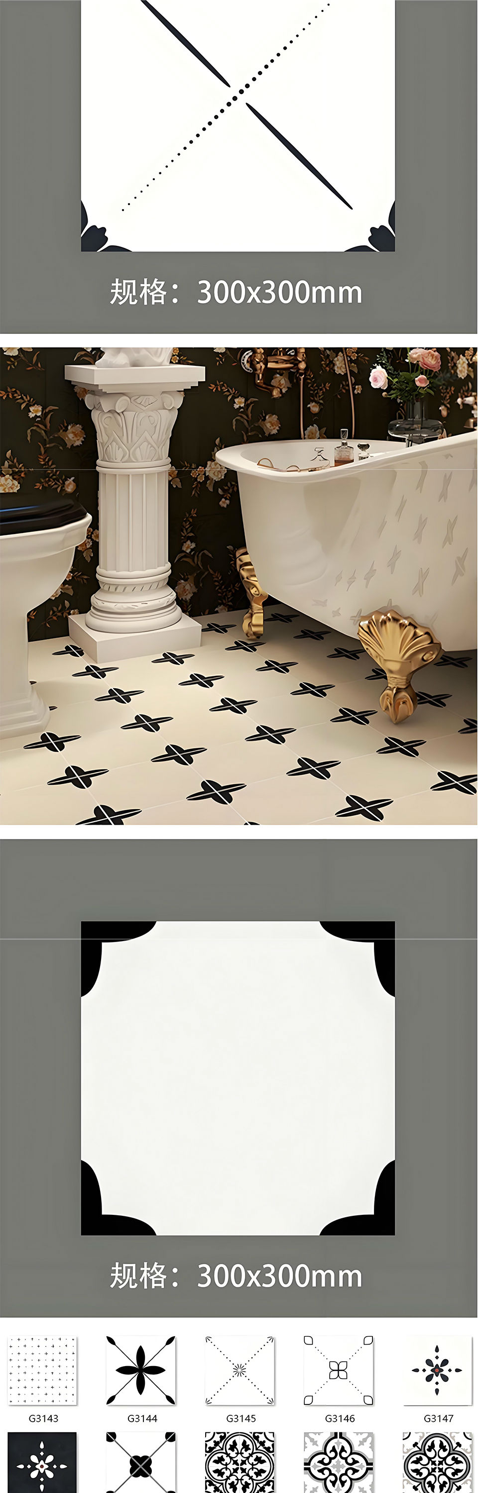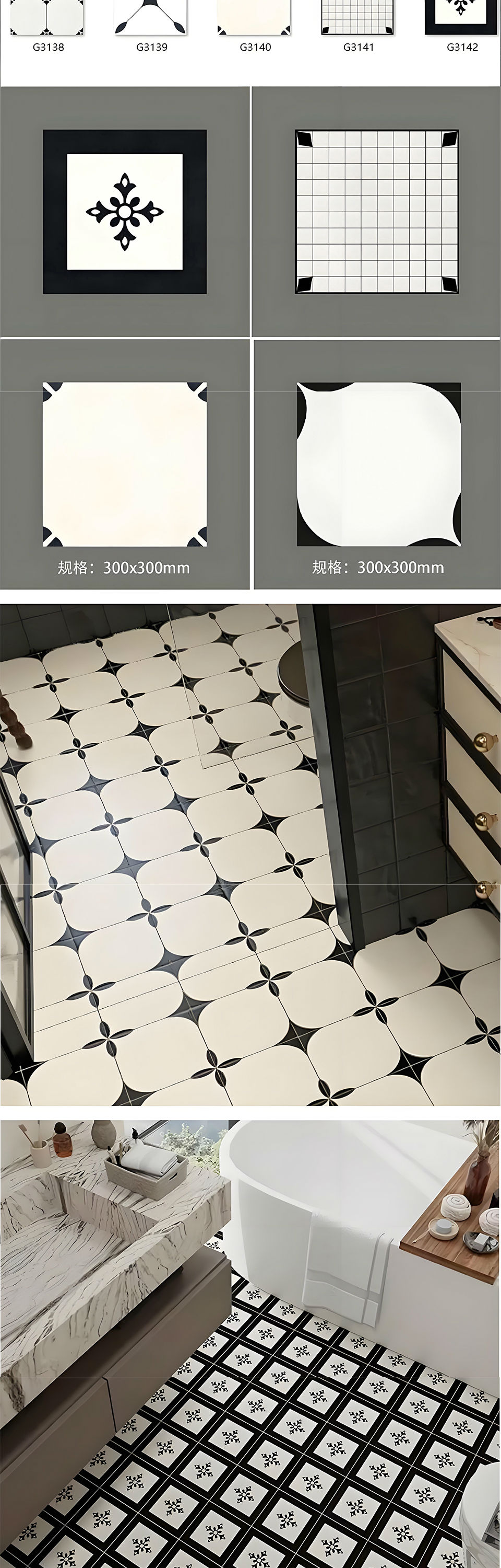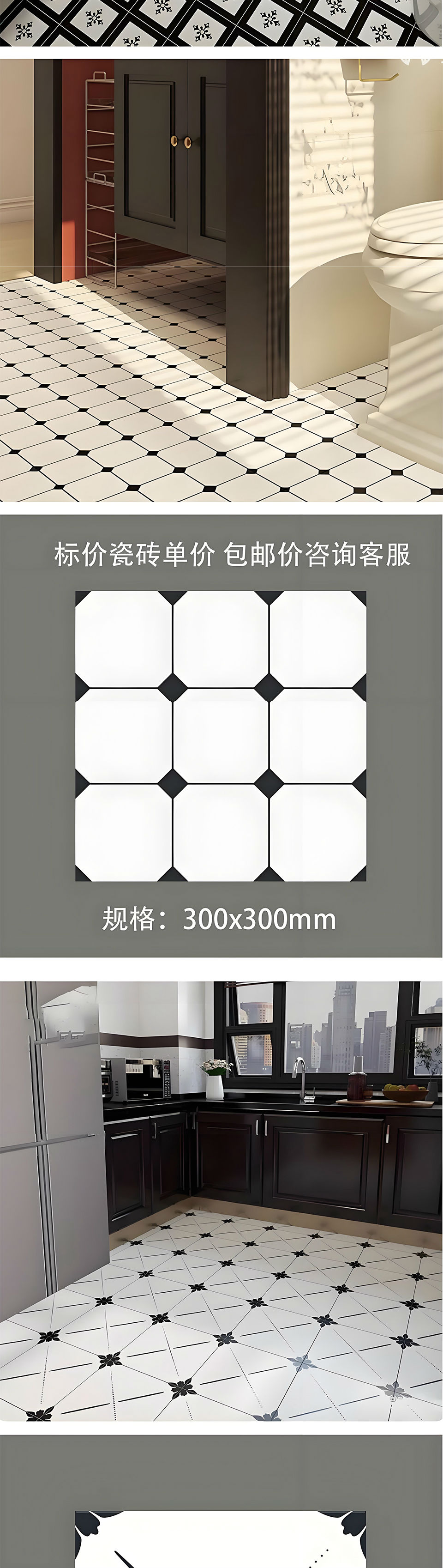 5瓷砖 300*300瓷砖黑白卫生间地砖厨房阳台黑白格北欧风格极简