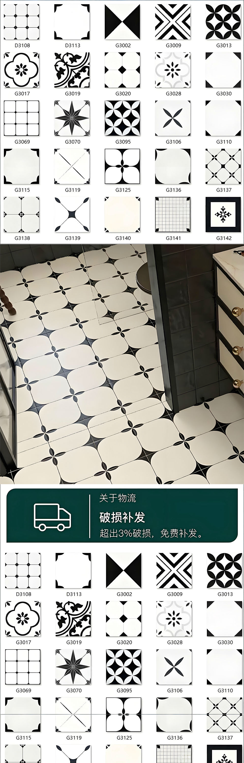 商品名称:5瓷砖 300*300瓷砖黑白卫生间地砖厨房阳台黑白格北欧风格极简