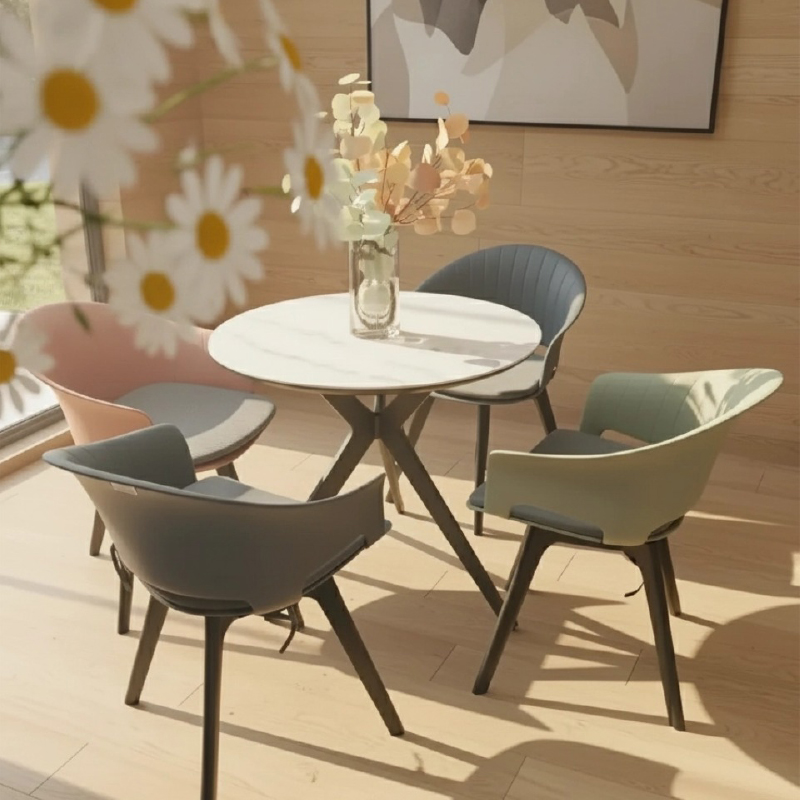 商品名称:T2312洽谈椅不带旋转 Y032洽谈桌 轻奢岩板小茶几家用客厅圆形茶几桌简约洽谈桌椅组合