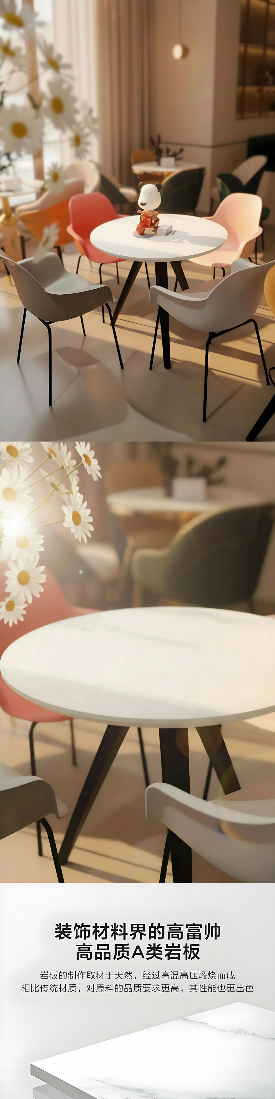 T2318洽谈椅 Y07洽谈桌 轻奢岩板餐桌小户型家用现代简约圆形洽谈桌椅网红阳台