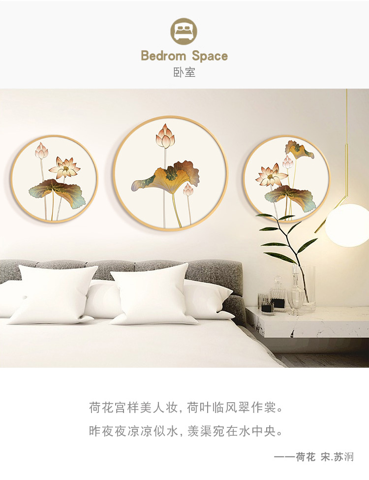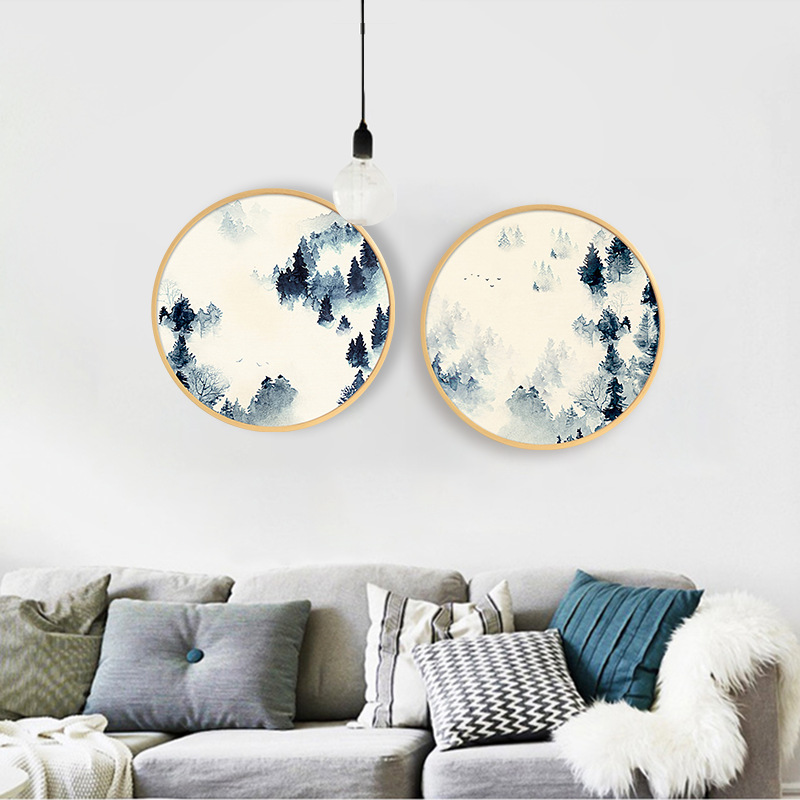 【伯利好】JS-S038-11 水墨花卉实木圆形装饰画壁画新中式客厅裝饰画卧室玄关挂画裝饰画