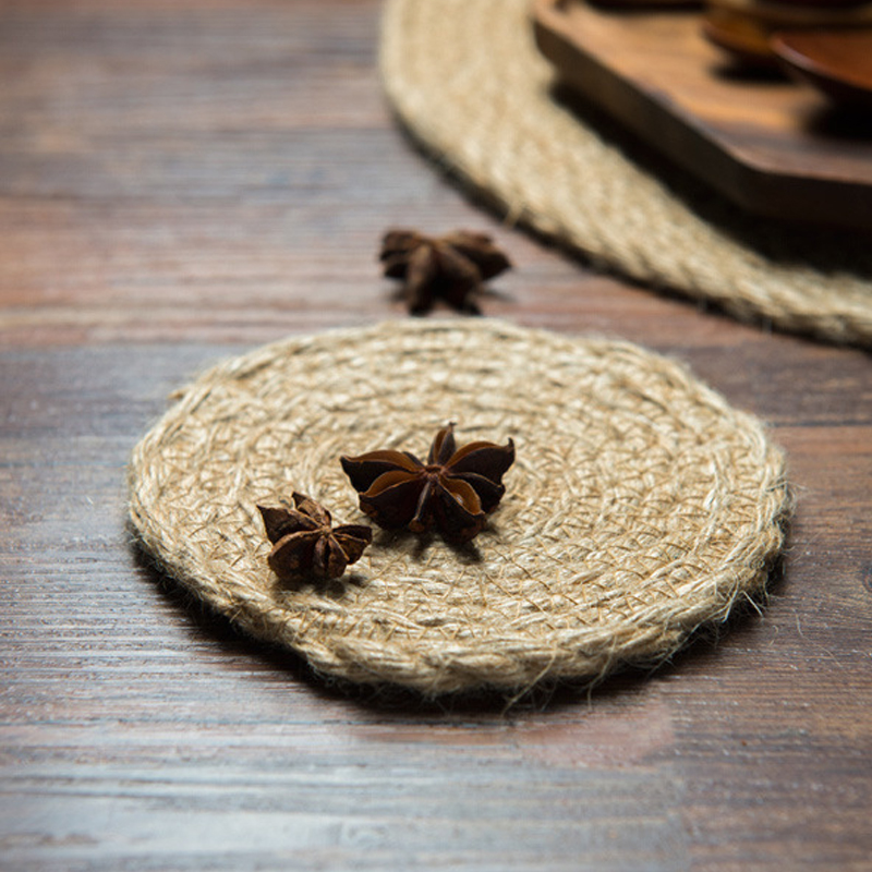 【伯利好】JS-F039-116 日式亚麻圆形加厚垫厨房餐桌防烫隔热垫杯垫盘垫锅垫纯手工餐垫