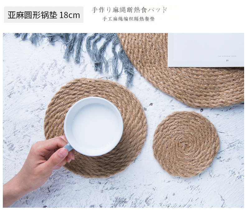 商品名称:【伯利好】JS-F039-116 日式亚麻圆形加厚垫厨房餐桌防烫隔热垫杯垫盘垫锅垫纯手工餐垫