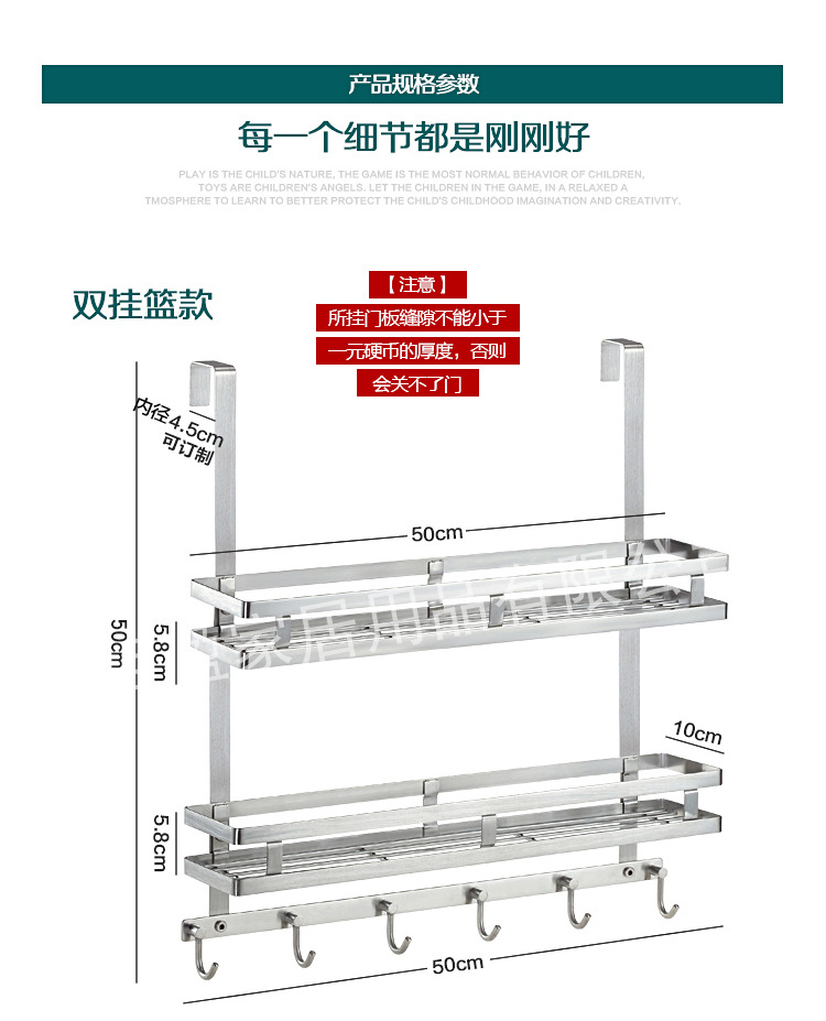 商品名称:【伯利好】JS-S039-14 创意免钉不锈钢门后挂钩置物架 卫浴卧室门后收纳挂钩储物架