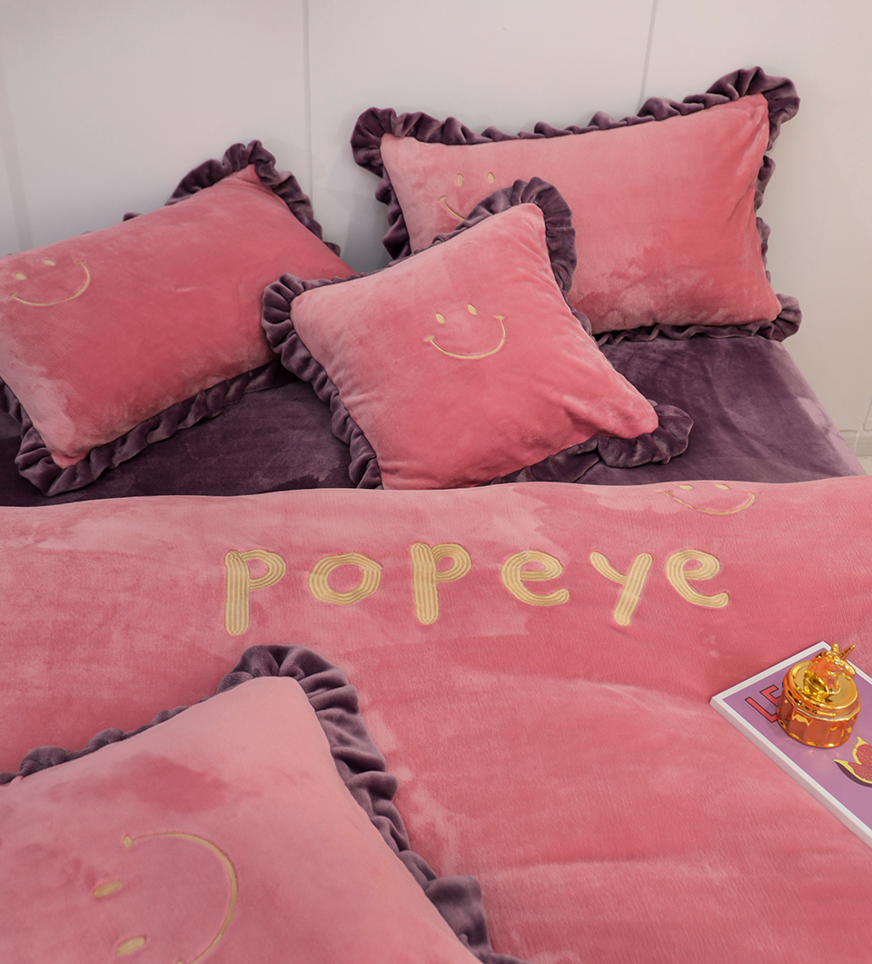 拼色绒四件套秋冬加厚大版保暖床上用品JS-C079-2