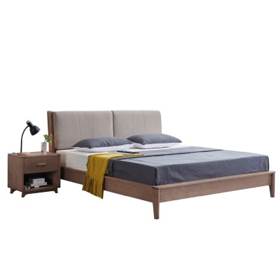 北欧风格大床、实木床、床头柜,卧室实木家具