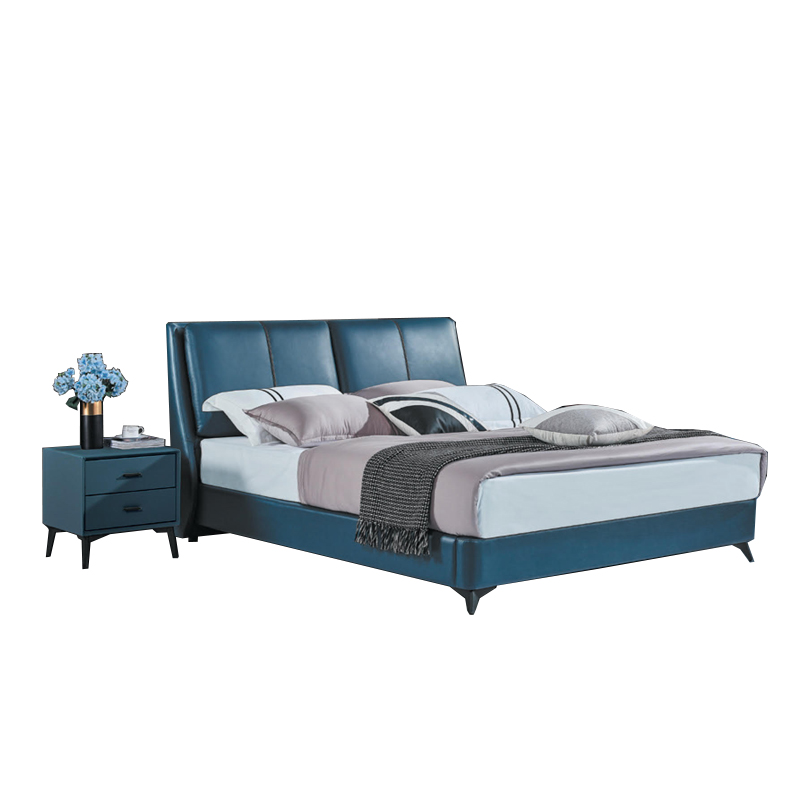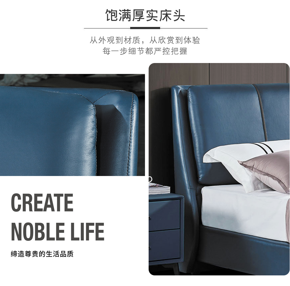 伯利好现代风格卧室真皮实木软床双人床简约软包主卧