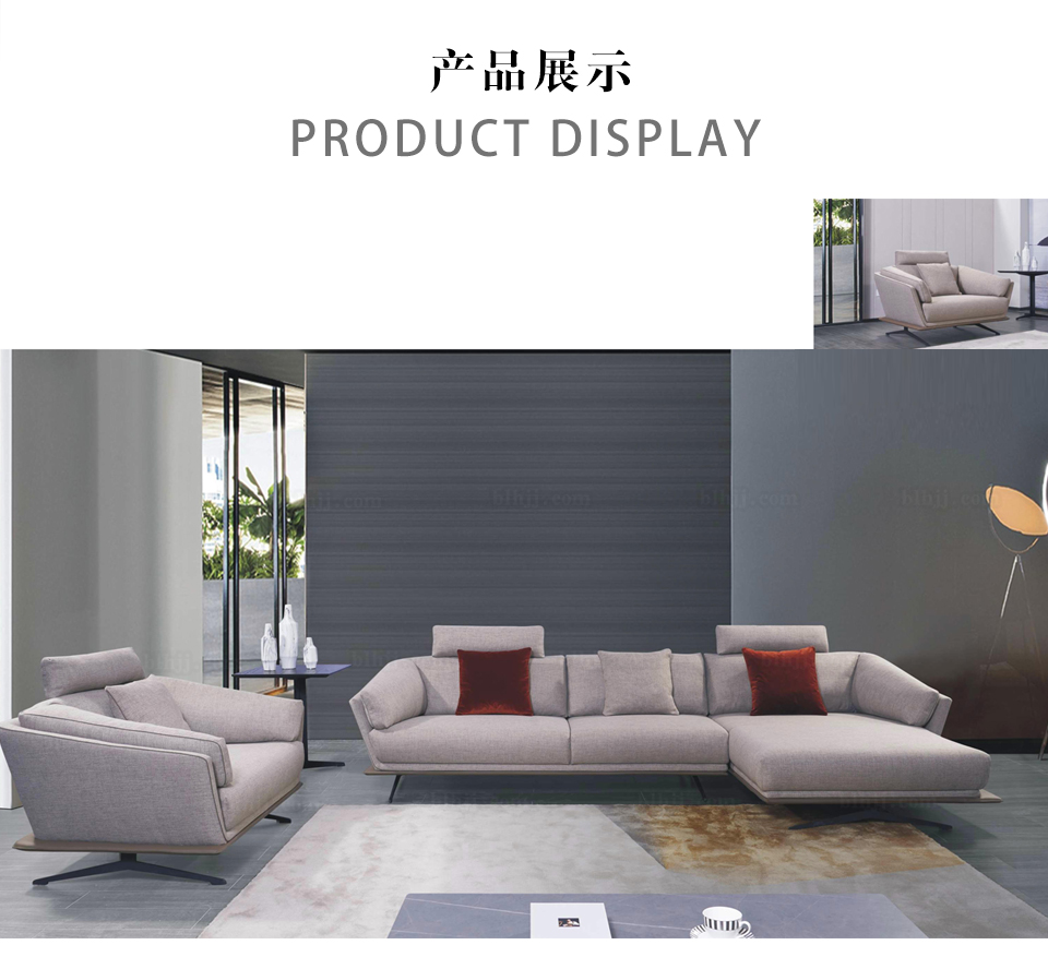 商品名称:伯利好现代简约科技布进口实木沙发落叶松布艺客厅L型转角沙发